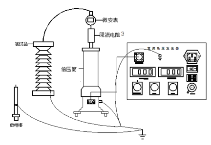 將機箱、倍壓筒放置到合適位置分別聯(lián)接好電源線、電纜線和接地線,保護接地線與工作接地線以及放電棒的接地線均應單獨接到試品的地線上(即一點接地),電源開關(guān)放在關(guān)斷位置并檢查調(diào)壓電位器應在零位。過電壓保護整定值一般為試驗電壓的1.1倍。順時針方向平緩調(diào)節(jié)調(diào)壓電位器,輸出端即從零開始升壓,升至所需電壓后,按規(guī)定時間記錄電流表讀數(shù),并檢查控制箱及高壓輸出線有無異?,F(xiàn)象及聲響。