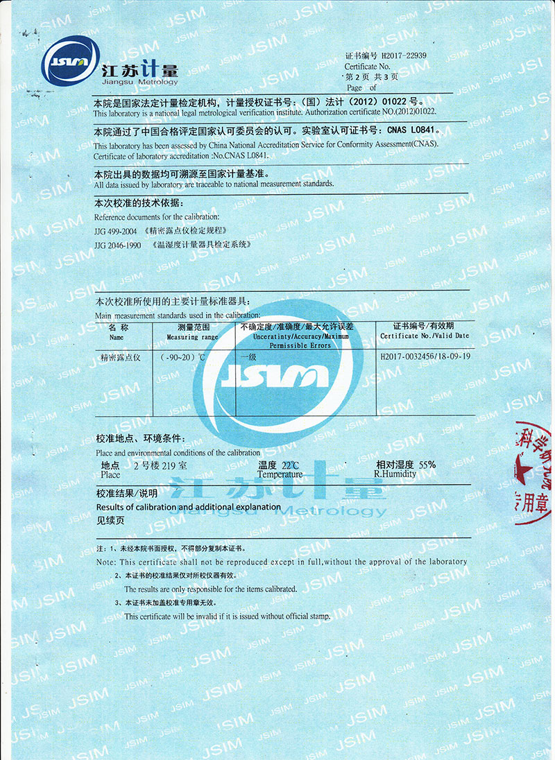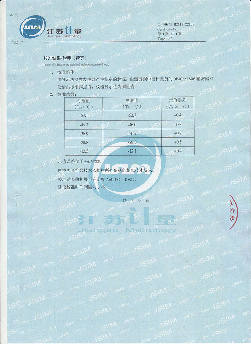 | 露點(diǎn)測量范圍 | ―60℃ — +20℃ |