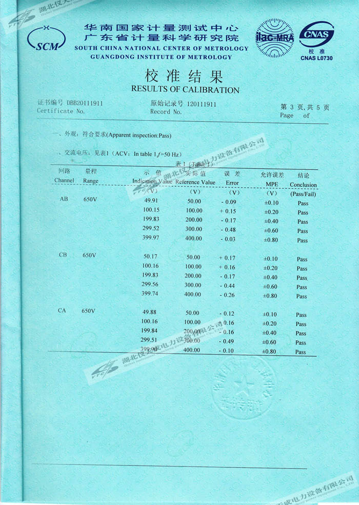 YTC3100變壓器損耗參數(shù)測試儀的資質(zhì)證書