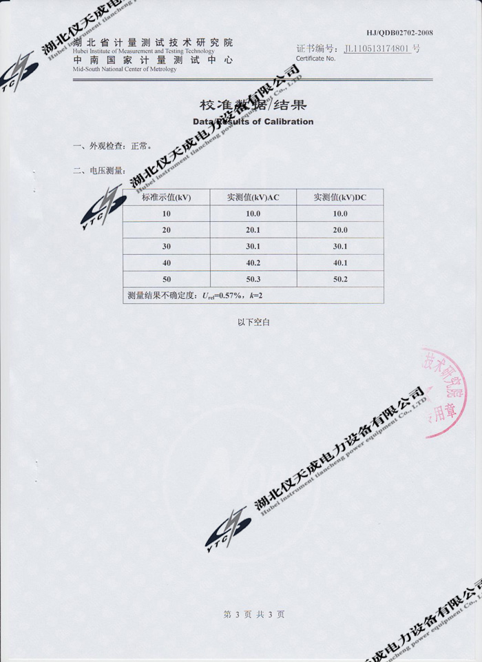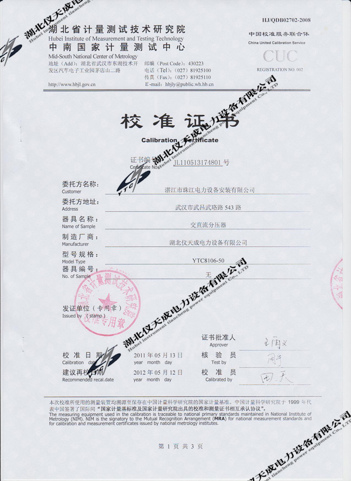 轉(zhuǎn)載:"YTC8106-50交直流分壓器的資質(zhì)證書(shū)" 請(qǐng)注明來(lái)源于儀天成電力。 更多技術(shù)問(wèn)題請(qǐng)致電儀天成電力客戶服務(wù):027-87876585,技術(shù)部專線:027-87876585,在線客服:719388481
